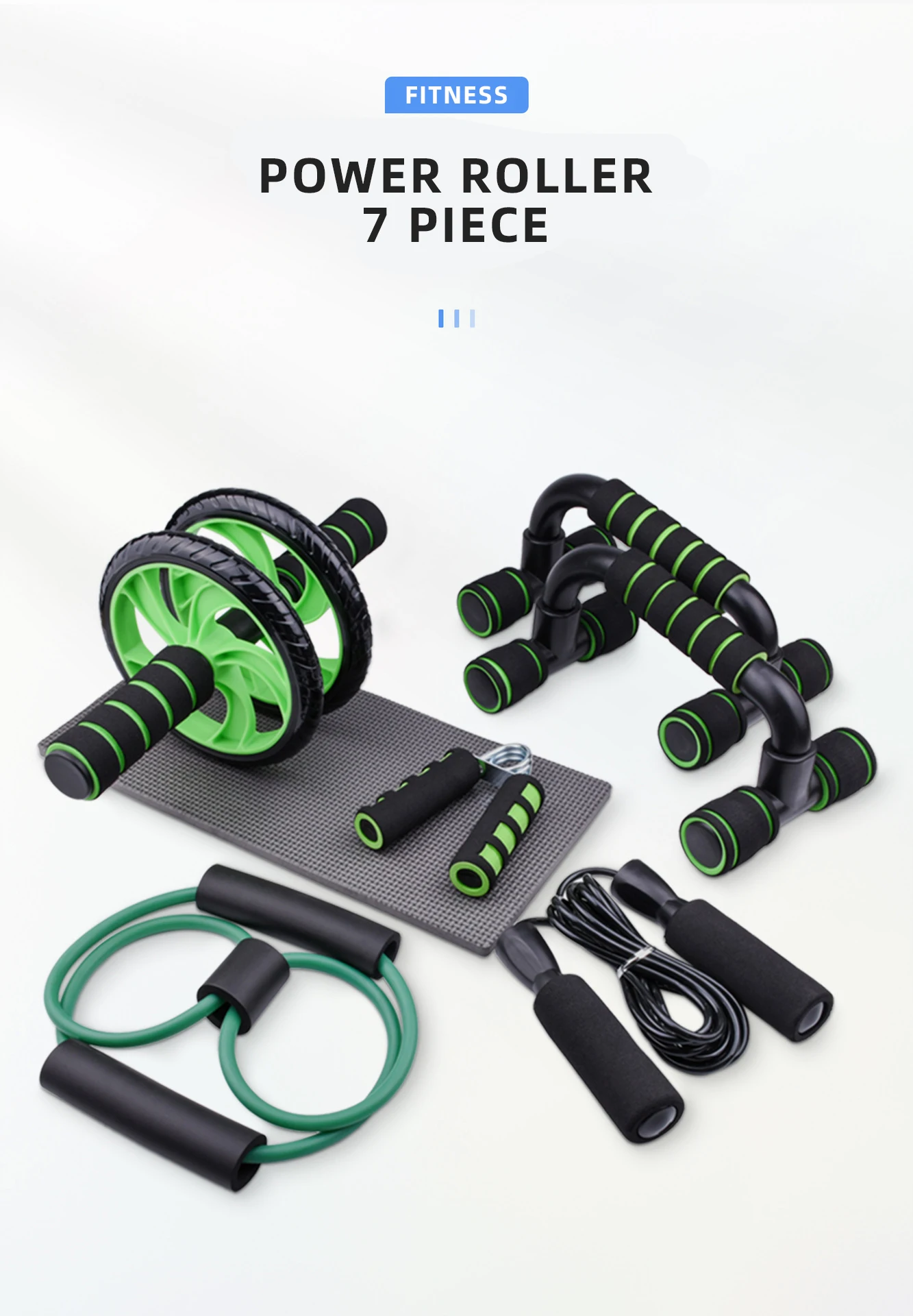 Product:Â Abdominal Wheel /Â Push-up Bar /Â Jump rope /Â Grip /Â 8 word resistance band